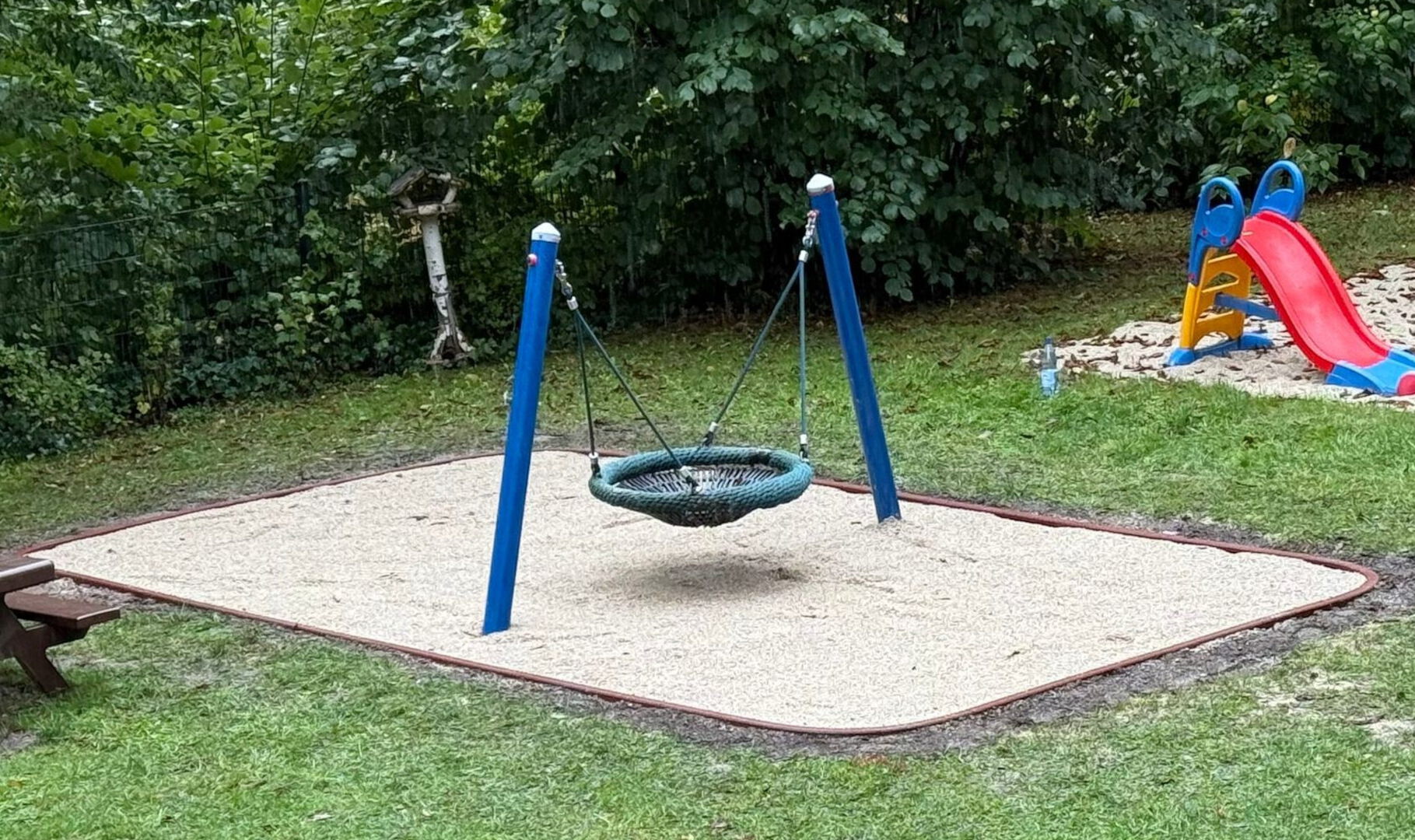 Die Kinder und Mitarbeiter(innen) im "Haus Parkstraße" bedanken sich ganz herzlich für die Spende der Rotarier unter Leitung von Frau Seifert, Präsidentin des Rotary Club „e-Club Compass Westfalia“. Durch diese finanzielle Unterstützung wurde es möglich, dass es nun eine hochwertige Einfassung der Storchennestschaukel für unsere Kleinkinder im Garten der Einrichtung gibt.