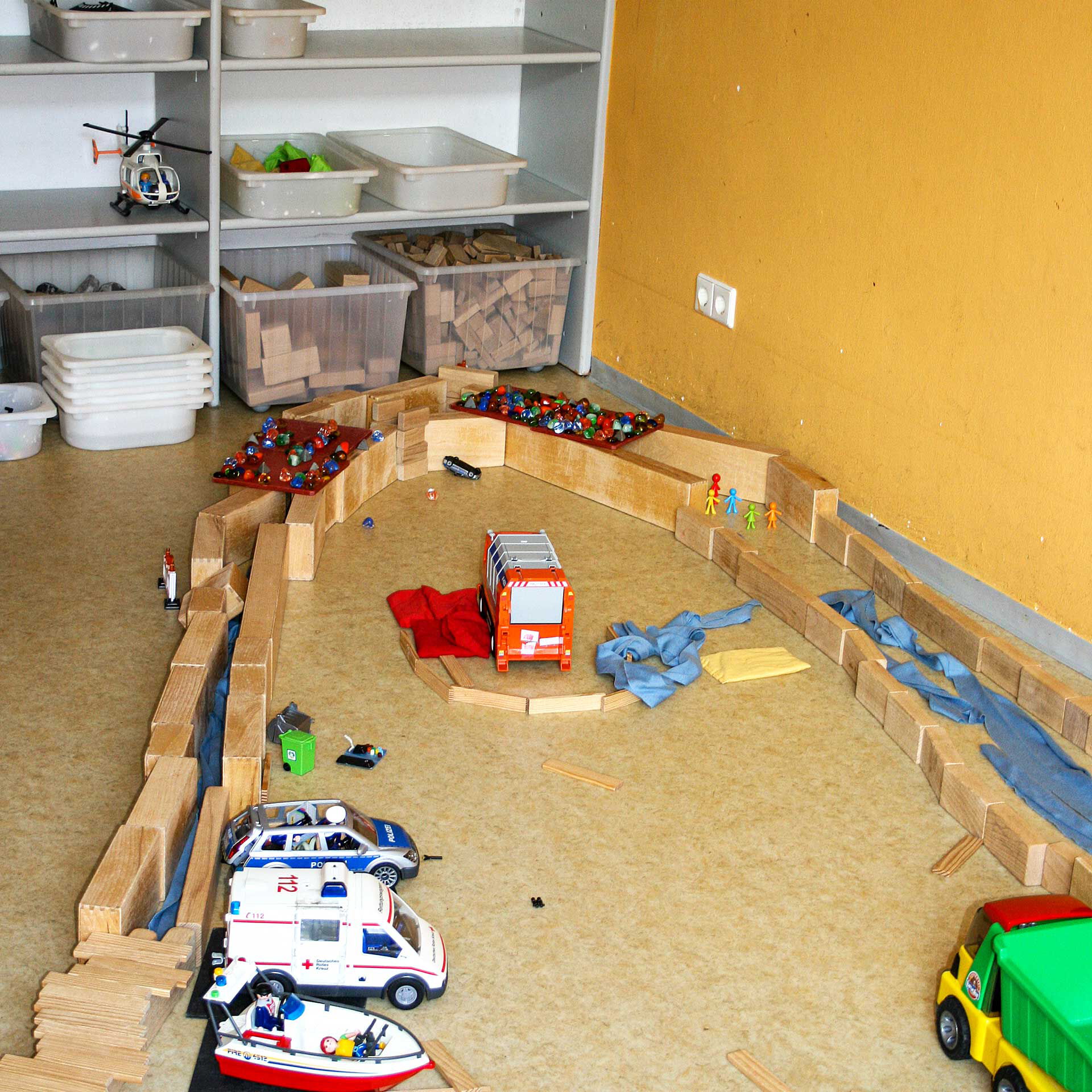 Durch feste Bezugserzieherinnen sowie verlässliche Strukturen und Abläufe erfahren die Kinder in unserem Haus eine Atmosphäre der Sicherheit, der Geborgenheit, des Zeithabens und des persönlichen Austausches. Dabei wechseln sich im Tagesablauf gruppeninterne und gruppenübergreifende Phasen ab. Die Kinder erleben sich so als Teil einer stabilen Gruppe, können aber auch Kontakt zu anderen Kindern und Erzieherinnen aufnehmen, um Interessen auszuleben oder neue Impulse zu bekommen. Unsere offen gestalteten Funktionsräume bieten vielfältige Materialien und ermöglichen ein hohes Maß an Selbstständigkeit sowie Beteiligung, so dass sich die Kinder als selbstwirksam erleben. Dies sind wesentliche Voraussetzungen für die Entwicklungs- und Bildungsprozesse der Kinder.